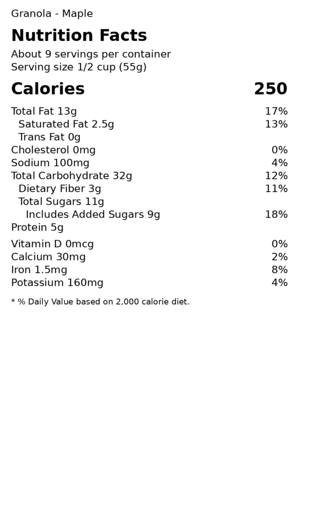 This one leans into that deep, warm maple flavor—nothing artificial, just real richness baked right into every cluster. It’s a little softer in profile, slightly sweet, and pairs just as well with yogurt as it does straight out of the bag. Simple, comforting, and exactly what you expect from a true maple granola.